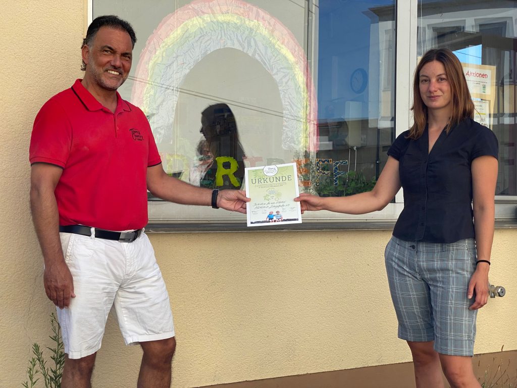 Andreas Doll, Botschafter der Town & Country Stiftung, überreichte am 19. Juli in den Räumen des Kindertreffs Wattstrasse einen Preis in Höhe von 1.000 Euro an Dr. Hannah Bolz, Geschäftsführerin der ILA 21 Lu e. V., die den Kindertreff Wattstrasse 2018 gründete und seither trägt. Den Kindertreff Wattstrasse besuchen Vorschul- und Grundschulkinder aus der Flüchtlingsunterkunft im Ludwigshafener Stadtteil Mundenheim. Im Spiel und durch Lernangebote erfahren sie Gemeinschaft und Unterstützung bei der Bildungsintegration. Die Town & Country Stiftung fördert durch die Vergabe des 10. Town & Country Stiftungspreises deutschlandweit gemeinnützige Einrichtungen, die mit und für benachteiligte Kinder und Jugendliche arbeiten.