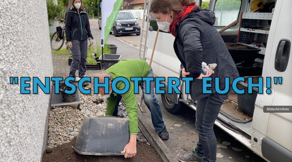 Am 22.5.2021 haben wir dem Ehepaar Acker in Ludwigshafen-Oggersheim mit der Anlage eines Staudenbeets eine Riesenfreude gemacht. Und für uns war der Wettbewerb „Entschottert Euch!“ ein großer Spaß! Wir hoffen auf viele Nachahmer*innen!